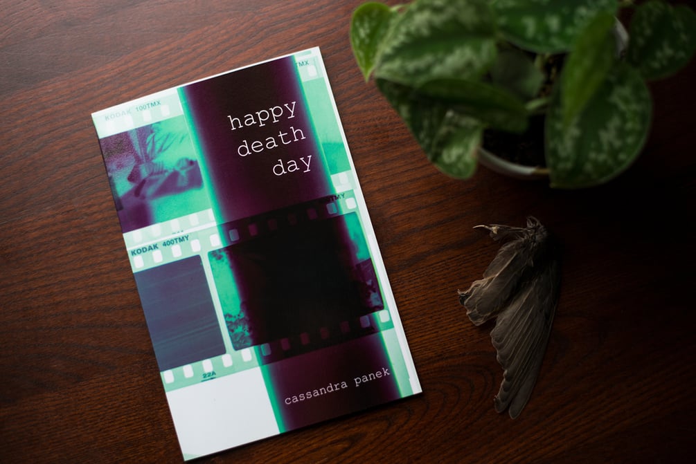 happy death day is a 45 page collection of weird grief-inspired photography, writing, and bizarre poems about death.